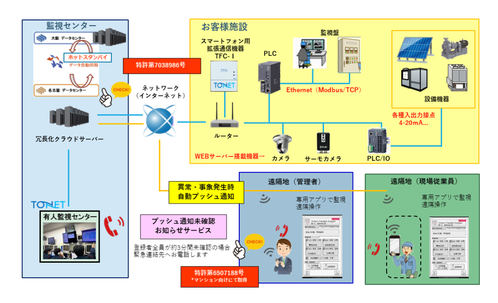 - 各種異常状態のプッシュ通知機能と未確認お知らせサービス